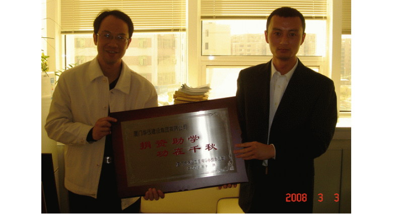 黃鶴麟副書記代表希望工程領(lǐng)導(dǎo)小組辦公室向我司頒發(fā)紀(jì)念牌匾,并向嚴(yán)總贈送誠信鼎。