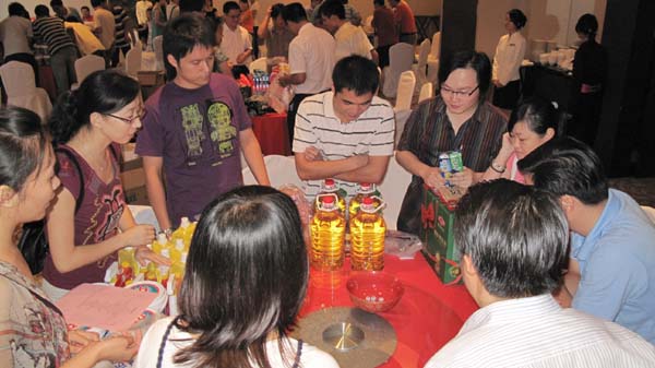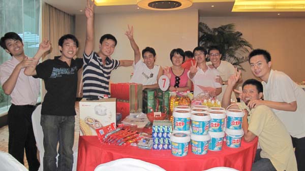 9月19日(農(nóng)歷八月初一),華遠(yuǎn)集團(tuán)全體職員歡聚在集團(tuán)旗下產(chǎn)業(yè)溫德姆和平(廈門)國(guó)際大酒店,舉行“慶中秋迎國(guó)慶博‘狀元’活動(dòng)”。此次博‘狀元’活動(dòng)得到了集團(tuán)領(lǐng)導(dǎo)的大力支持,籌備組準(zhǔn)備了20多種獎(jiǎng)品供大家博取??偨?jīng)理嚴(yán)文亮先生也親自來(lái)到現(xiàn)場(chǎng),走進(jìn)員工當(dāng)中,同大家共博同樂(lè)。隨著大獎(jiǎng)的不斷出現(xiàn),笑聲、掌聲、尖叫聲將現(xiàn)場(chǎng)氣氛一次又一次地推向高潮?!盃钤钡慕侵鸶泳o張、刺激,經(jīng)過(guò)了數(shù)十輪的較量,各組“狀元”終于在大家的歡笑聲、祝福聲中誕生了!
