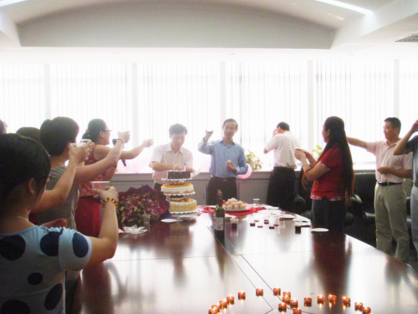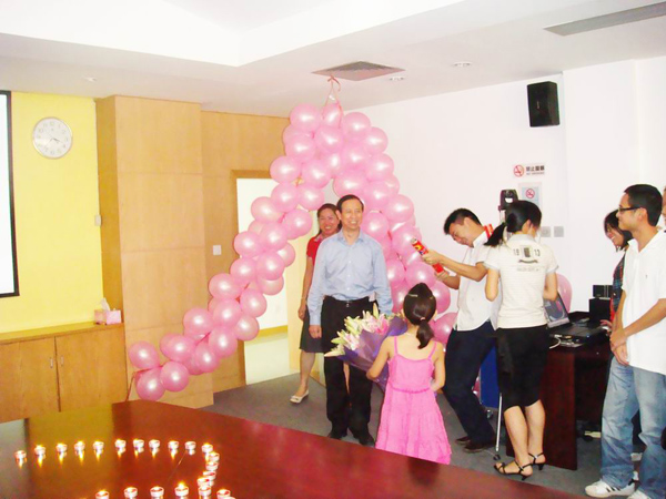 在溫情的八月迎來了華遠(yuǎn)集團(tuán)創(chuàng)始人嚴(yán)文亮先生的生日,華遠(yuǎn)集團(tuán)員工自發(fā)為嚴(yán)總舉辦了一個(gè)神秘而又驚喜的生日Party。粉色的氣球、雙心相交的生日蠟燭、醇香的美酒、誘人的蛋糕,點(diǎn)燃了現(xiàn)場的氣氛也傳遞出了參與者的喜悅。在舉杯共慶之時(shí)大家道出了自己內(nèi)心最真誠的祝福。8月份過生日的員工,幸運(yùn)地同嚴(yán)總共同分享這份溫馨與快樂,并合影留念。