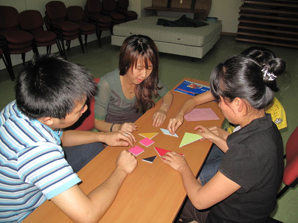 7月9日,華遠(yuǎn)集團(tuán)繼“員工精神”系列培訓(xùn)后,成功舉辦“七巧板”拓展訓(xùn)練。該項(xiàng)訓(xùn)練是以七巧板為道具,模擬公司決策層及各分公司、各部門的溝通協(xié)作,通過團(tuán)隊(duì)整合完成一系列復(fù)雜的任務(wù)的過程?;顒?dòng)現(xiàn)場(chǎng)氣氛十分熱烈,在熱身活動(dòng)中各位學(xué)員都已積極投入、熱情高漲。在七巧板模擬訓(xùn)練游戲中,大家更加努力認(rèn)真地對(duì)待自己的任務(wù),千方百計(jì)尋找各種辦法實(shí)現(xiàn)“訂單”。該游戲也十分直觀、真實(shí)的投射出了每位員工的工作狀態(tài)。