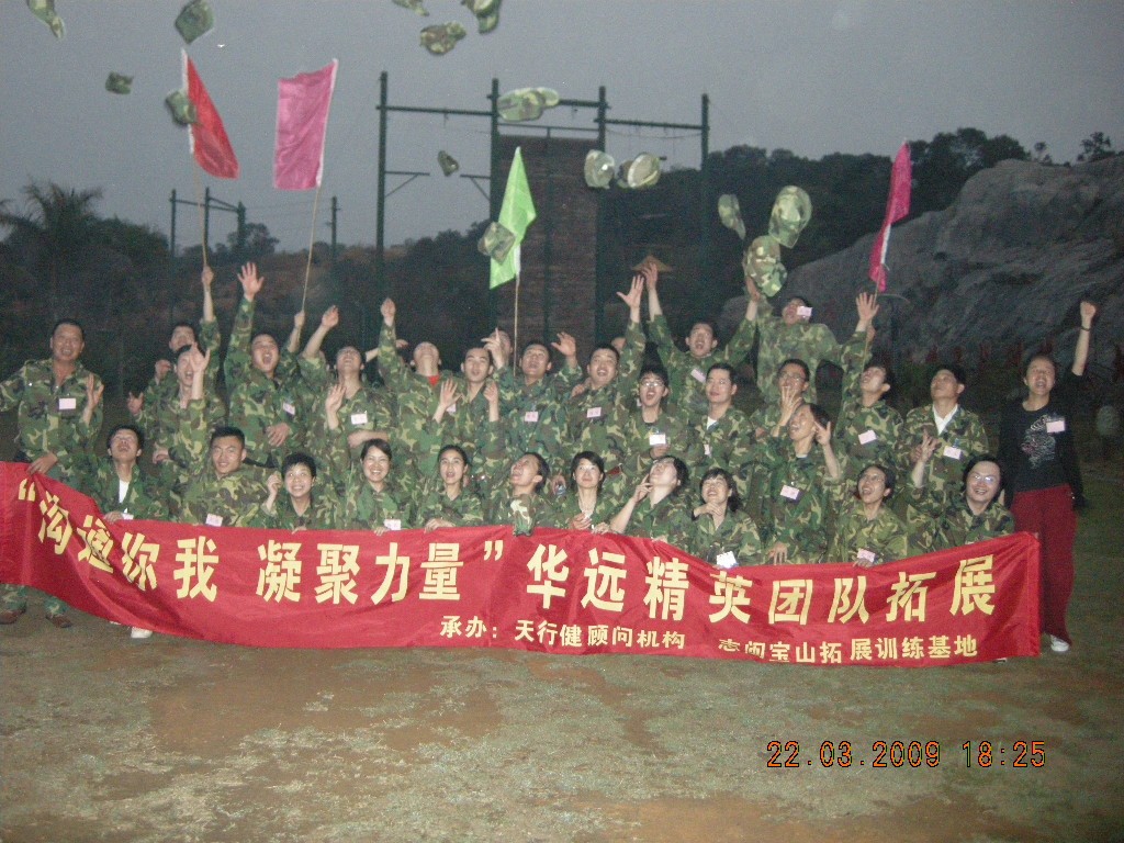 2009年3月21日、22日,廈門華遠集團全體員工至泉州寶山志閩拓展訓(xùn)練基地進行了為期一天的拓展訓(xùn)練。訓(xùn)后全體人員深刻體會到:不可能是可以變?yōu)榭赡?,只要鎖定目標(biāo),堅定信心,勇往直前,就能實現(xiàn)自我超越。通過此次拓展訓(xùn)練,加強了全體人員的執(zhí)行力、團隊凝聚力和企業(yè)向心力;同時也提高了團隊協(xié)作能力。培訓(xùn)結(jié)束時“華遠,我愛你!”響徹天空,帽子飛揚,全體人員歡呼雀躍久久不愿離去。帶著這份激情,全體華遠人將同舟共濟更好地展開2009年華遠的新征程。