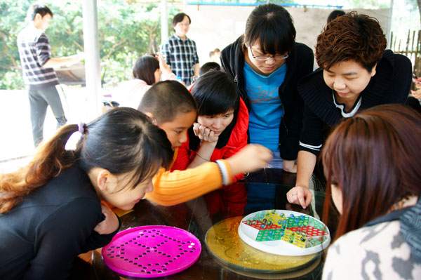 在第一輪飛鏢比賽中各組的表現(xiàn)就吸足了眾人的眼球。在比賽過程中,第一組采購部的兩位女英雄因人數(shù)原因不得不場(chǎng)場(chǎng)上陣,一天下來她們沒有做別的事,就是一直在比賽、比賽、還是比賽。功夫不負(fù)有心人,在她們不放棄的信念的堅(jiān)持下,取得了兩個(gè)冠軍的好成績。第二組工程項(xiàng)目部發(fā)揮人多優(yōu)勢(shì),奮力保住第一的位置,雖然在飛行棋這一輪中被小朋友們打敗,但也無傷大局。第三組秘書科的小朋友為了拿冠軍,當(dāng)眾批評(píng)了著迷于麻將桌而不來幫忙的媽媽。第四組房產(chǎn)的部實(shí)力派乒乓球外援因迷路,在比賽結(jié)束后才趕到,雖然在飛行棋環(huán)節(jié)小朋友沉著應(yīng)對(duì),但還是因運(yùn)氣問題最后落敗于第五組經(jīng)營部的“沉穩(wěn)哥”!“沉穩(wěn)哥”絕對(duì)是名不虛傳,父子兵輪番上陣,最終將比分由原來的第三名追至并列第一名。第六組財(cái)務(wù)部的媽媽們?cè)谄磮D環(huán)節(jié)全力投入,連自己的孩子去了哪里玩都顧不上管??!