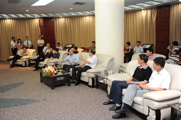 6月27日下午,前來參加“昆明·五華2010年廈門招商推介會”的昆明市五華區(qū)金幼和區(qū)長一行二十多人蒞臨我司總部華遠大廈考察訪問,我司董事長嚴文亮先生及總經(jīng)理助理、房產(chǎn)部經(jīng)理等人參加了接見會。嚴文亮董事長對遠道而來的嘉賓表示真誠的問候,向來訪的領導嘉賓介紹了我司的發(fā)展歷程,并就我司正在建設的南昌和平國際大酒店項目和昆明項目的建設情況向金區(qū)長做了匯報。會后,金區(qū)長向嚴文亮董事長贈送了紀念品,代表團一行人隨后參觀了我司總部的辦公區(qū)域。